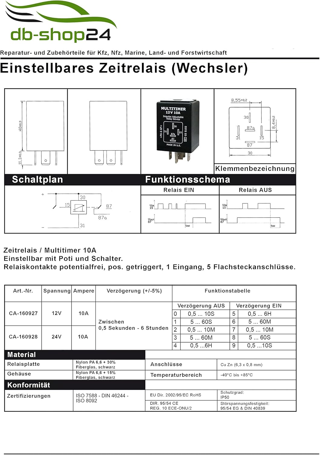 Universal Multitimer Zeitrelais 12v 0 5 Sek Bis 6 Std Amazon De Auto